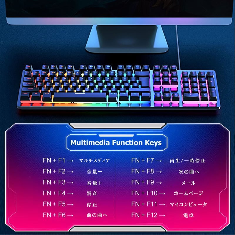 ファンクションキーと連動したマルチメディアキーを搭載しています。