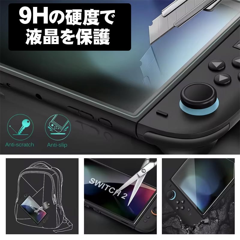 商品名:Switch2 強化ガラス 液晶ガラスフィルム 【GLASS SCREEN】1枚 耐指紋 表面硬度 9H スクリーン 液晶保護 簡単取り付け
