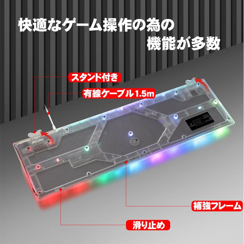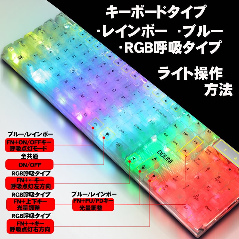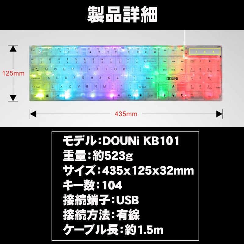 商品名:DOUNi メンブレン式ゲーミングキーボード【KB101】 クリア 有線 使いやすい 打ちやすい 104キー バックライト ゲーム 光る キーボード 【送料無料】