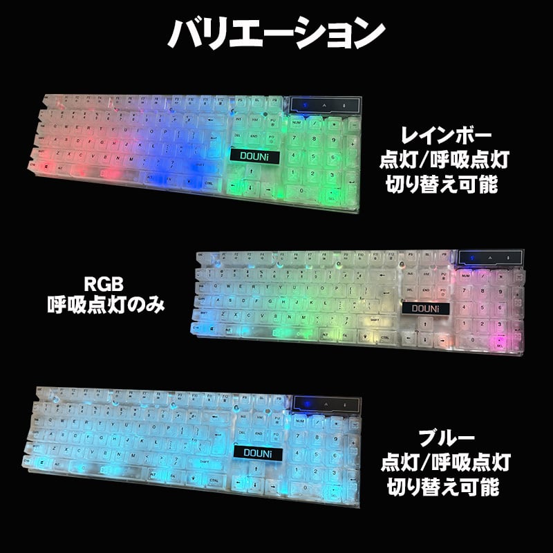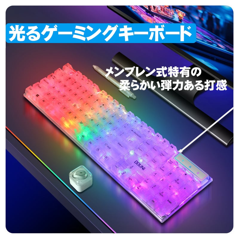 DOUNi メンブレン式ゲーミングキーボード【KB101】 クリア 有線 使いやすい 打ちやすい 104キー バックライト ゲーム 光る キーボード 【送料無料】