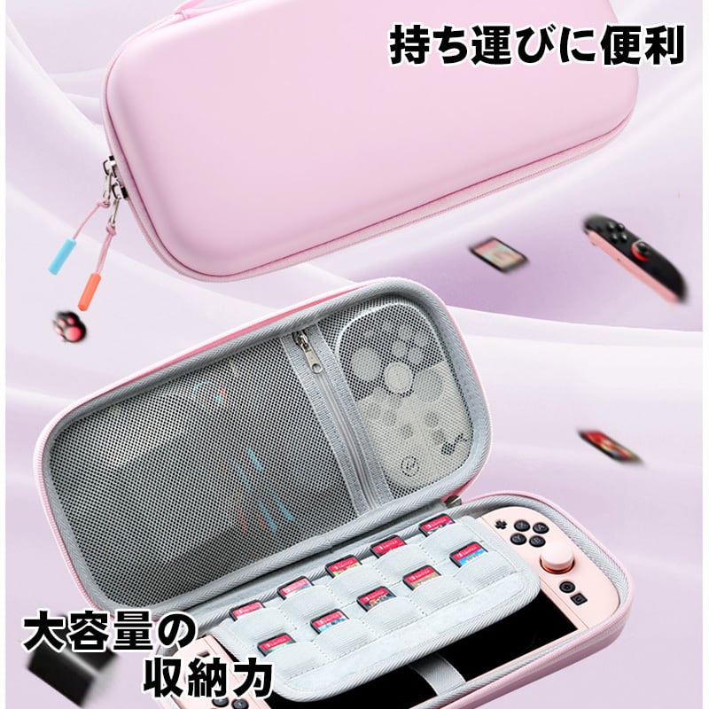Switch2 キャリングケース アニマル キャラ ホワイト ピンク 保護ケース 持ち運び キャリーバッグ ゲームカード 収納