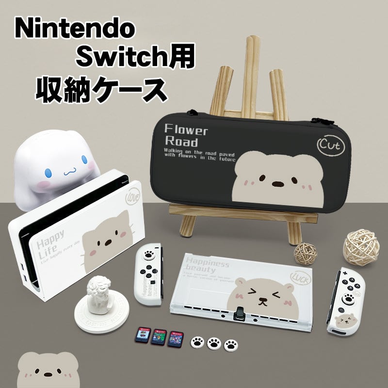 商品名:Nintendo Switch キャリングケース アニマル ブラック ガラスフイルム スティクカバーセット 保護ケース 持ち運び キャリーバッグ ゲームカード 収納