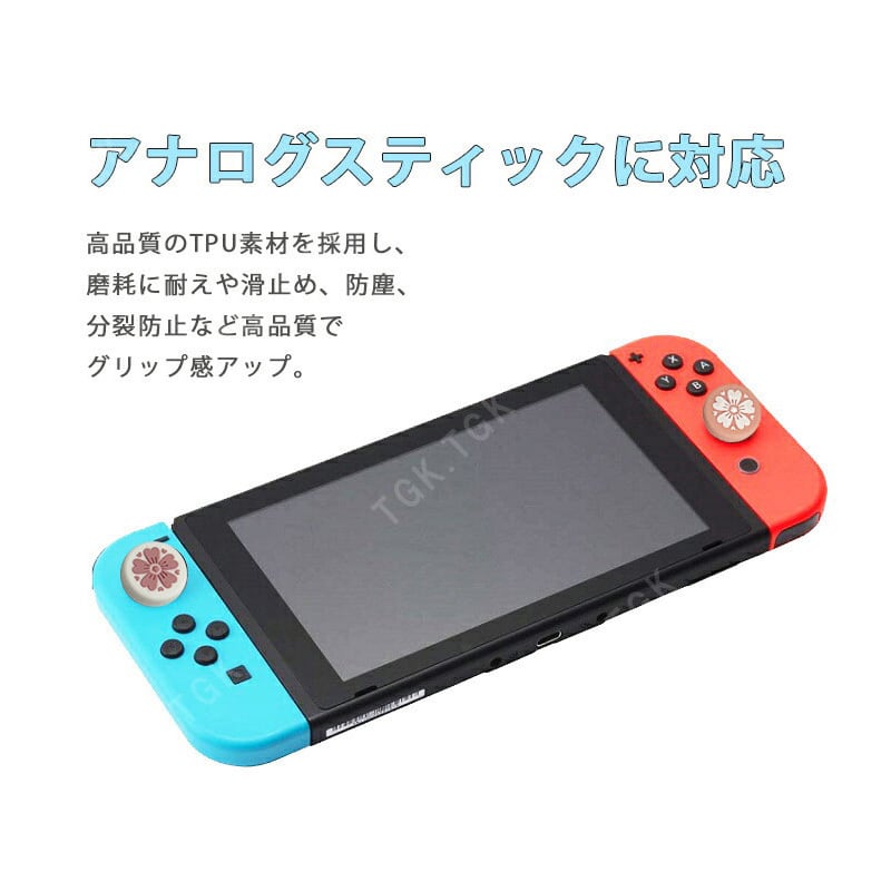 Nintendo Switch 有機ELモデル Switch Lite対応 アナログスティックカバー サクラ柄 ピンク 下地ピンク 各色2個 4個入り