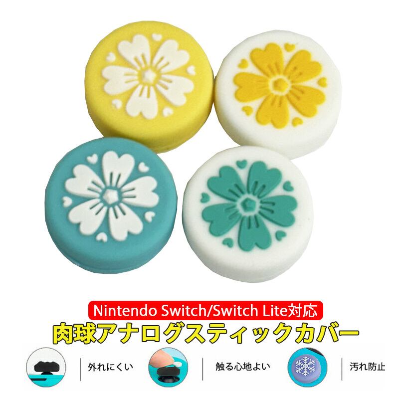 Nintendo Switch 有機ELモデル Switch Lite対応 アナログスティックカバー サクラ柄 イエロー ブルー 白イエロー 白ブルー 各色1個 4個入り