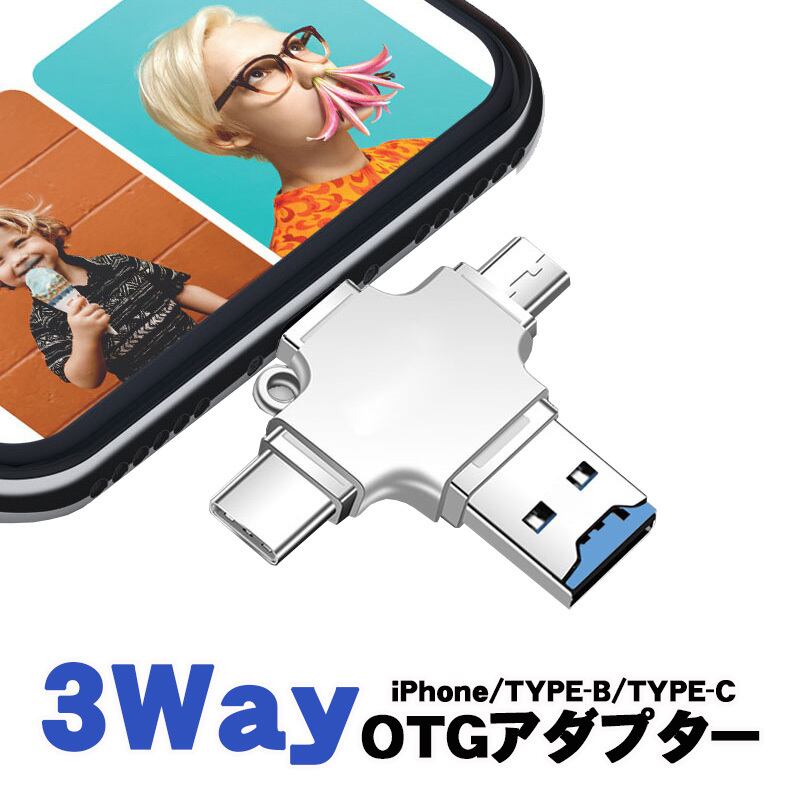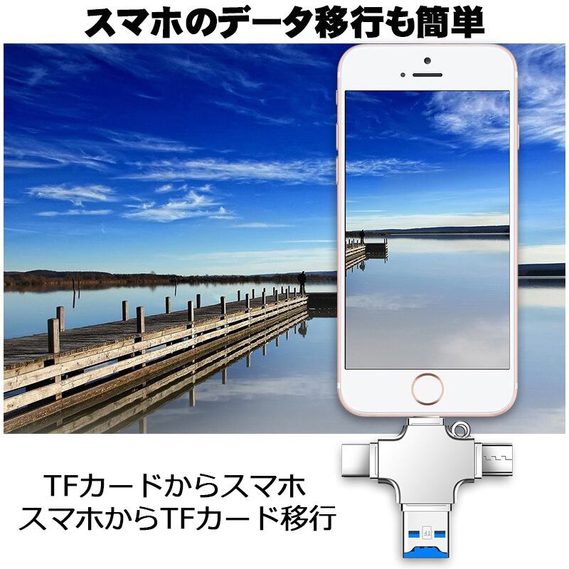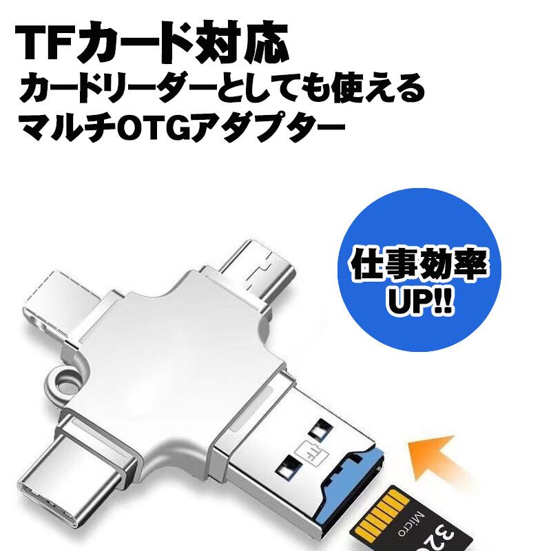 商品名:OTGアダプター 5in1 iPhone Type-B Type-c USB-A3.0 TFカード シルバー OTG機能 データ転送 USBメモリ接続