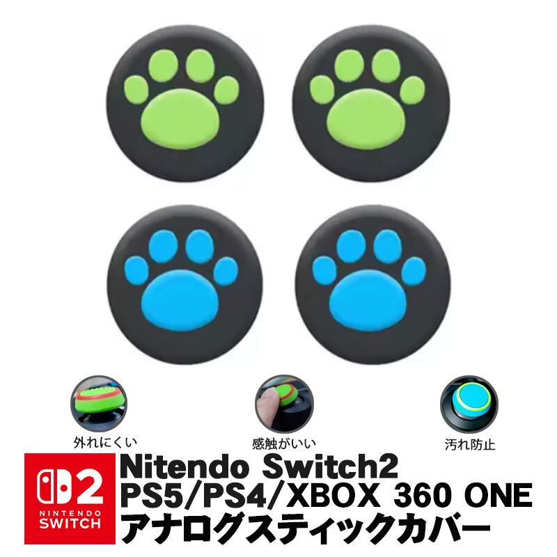 プレステ PS3 PS4 XBOX ONE 360対応 アナログスティックカバー 肉球 猫 黒グリーン 黒ブルー 各色2個 4個セット 【送料無料】