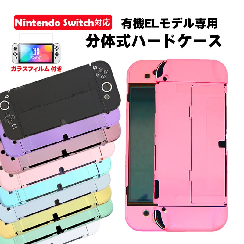 有機ELモデル Switch対応 本体カバー ハードケース 分体式 ガラスフィルム付き 保護カバー 保護ケース 任天堂スイッチ ピンク ブルー ブラック【送料無料】