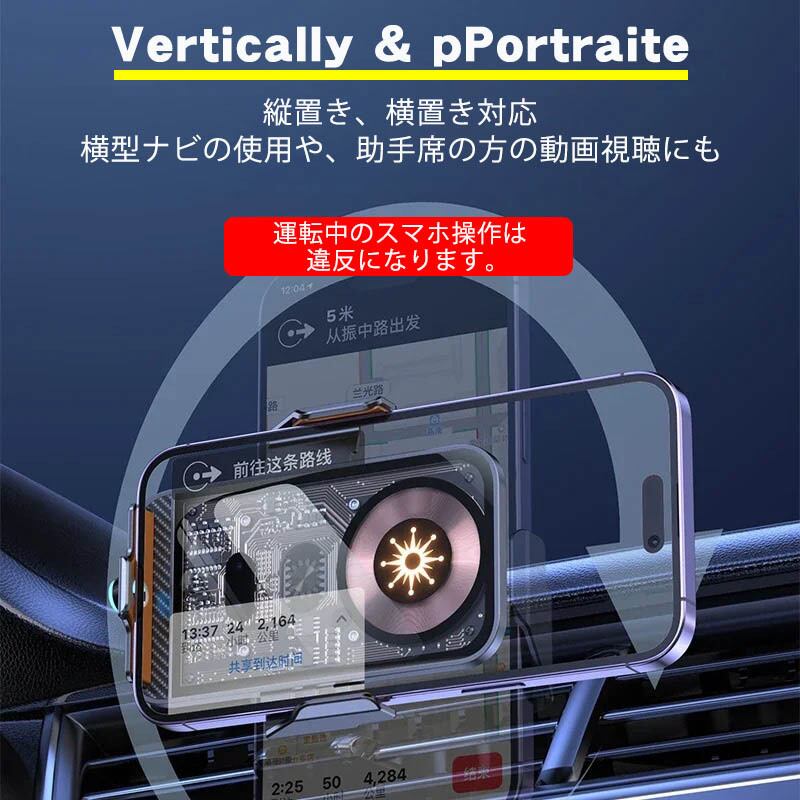ワイヤレス充電 車載用スマホホルダー スマホスタンド エアコン吹き出し口差し込みタイプ クリップ式 スマートフォンフォルダー グレー ブルー